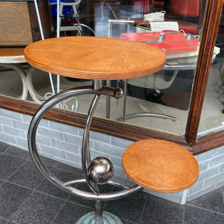 'Space Age' chrome & wood side table in sound condition.